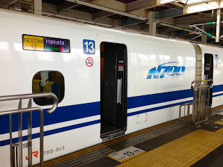 | Nozomi is the name of our bullet train. Nozomi 17, bound for Hakata. 私達が乗ったのはのぞみ17号の博多行き新幹線でした。 |