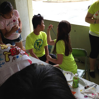 | After lunch we all sat down and started face-painting! ランチを食べてからフェイスペイントをしました。 |